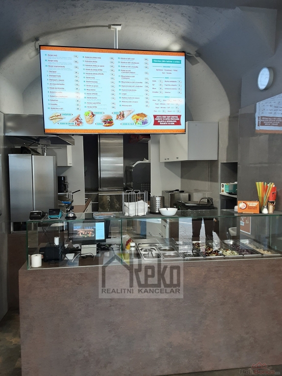Jedná se o zavedené bistro rychlého občerstvení, které současný nájemce přenechá za úplatu 1.250.000,-Kč. Prostory s výměrou 50,5 m2 jsou po kompletní rekonstrukci (stěny, obklady, podlahy, odpady, gastronomické zařízení). Prostor je rozdělen na prodejní místo s možností posezení, dále na přípravnu, sociální zázemí (WC s umyvadlem) a úklidovou místnost s výlevkou. Veškeré zařízení a vybavení je v ceně úplaty. Do těchto prostor jsou dva přístupy, jeden z ulice a druhý ze dvora, kde lze parkovat s jedním autem a zároveň odtud přebírat zboží.