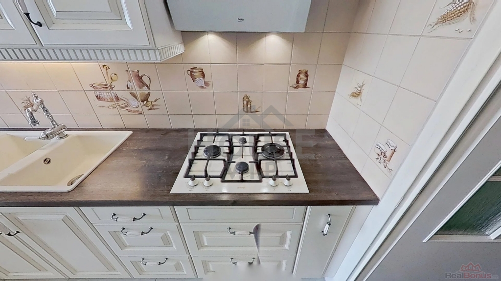 Ve spodním patře se nachází vstupní hala, samostatný pokoj, koupelna se sprchou a toaletou a komora. Horní patro nabízí předsíň, další komoru, koupelnu, samostatné WC, plně vybavenou kuchyni (Electrolux, Gorenje, Bosch), obývací pokoj a dva další pokoje. Každé patro má vlastní koupelnu i toaletu, což zajišťuje vysoký komfort i pro vícečlennou domácnost.