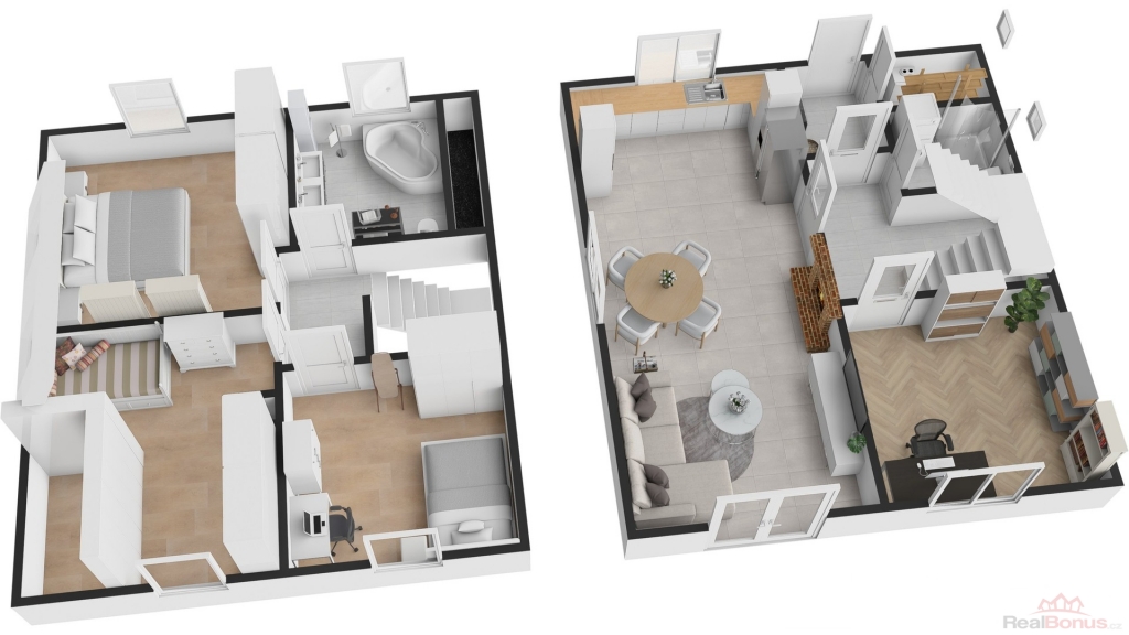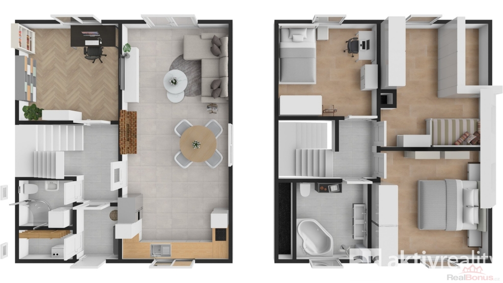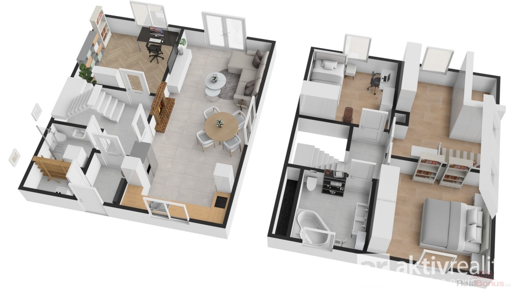 Dům je situován na pozemku o celkové výměře 644 m2, přičemž samotná zahrada o velikosti 569 m2 poskytuje dostatek prostoru pro každodenní život i odpočinek. Dispozice domu je navržena velmi prakticky a funkčně. V přízemí se nachází obývací pokoj s kuchyňským koutem a přímým vstupem na terasu s pergolou, která přirozeně rozšiřuje obytný prostor a vytváří příjemné zázemí pro posezení s rodinou či přáteli. Dále je zde pracovna, koupelna a technická místnost. V patře jsou umístěny tři samostatné ložnice, z nichž jedna slouží jako šatna a ve druhé je aktuálně umístěna sauna, dále je zde prostorná koupelna. Užitná plocha domu činí 121 m2, doplněná o terasu s pergolou o velikosti cca 20 m2 a kryté parkovací stání pro dva vozy o velikosti cca 25 m2.