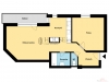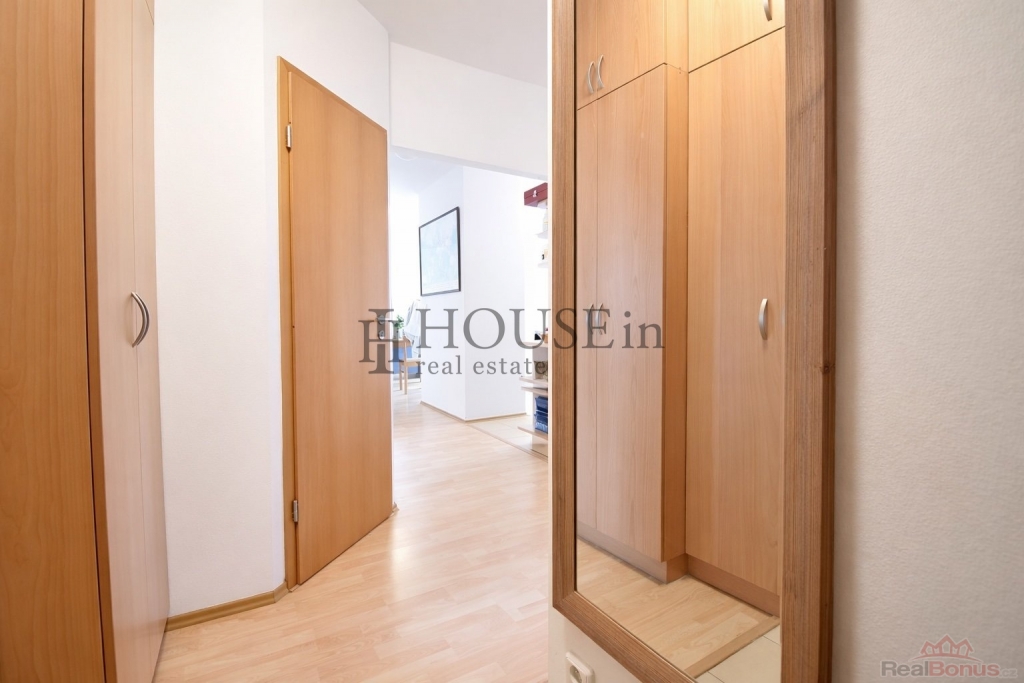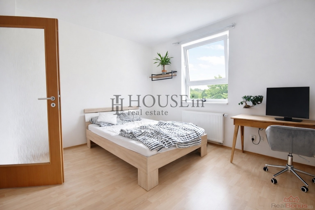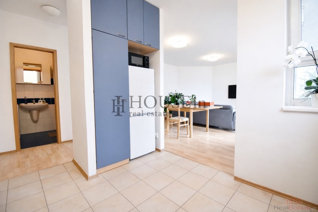 Dispozici bytu tvoří vstupní chodba s dostatkem úložného prostoru, ze které je přístup do všech místností. Dominantou bytu je prostorný obývací pokoj propojený s kuchyňským koutem. Kuchyňská linka je vybavena varnou deskou, troubou, digestoří a lednicí. Z obývací části je vstup na balkón orientovaný do klidného vnitrobloku. Samostatná ložnice nabízí dostatek prostoru pro manželskou postel i šatní skříň. Koupelna je vybavena vanou a umyvadlem, toaleta je samostatná. Byt je nabízen bez nábytku.