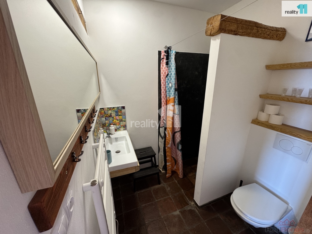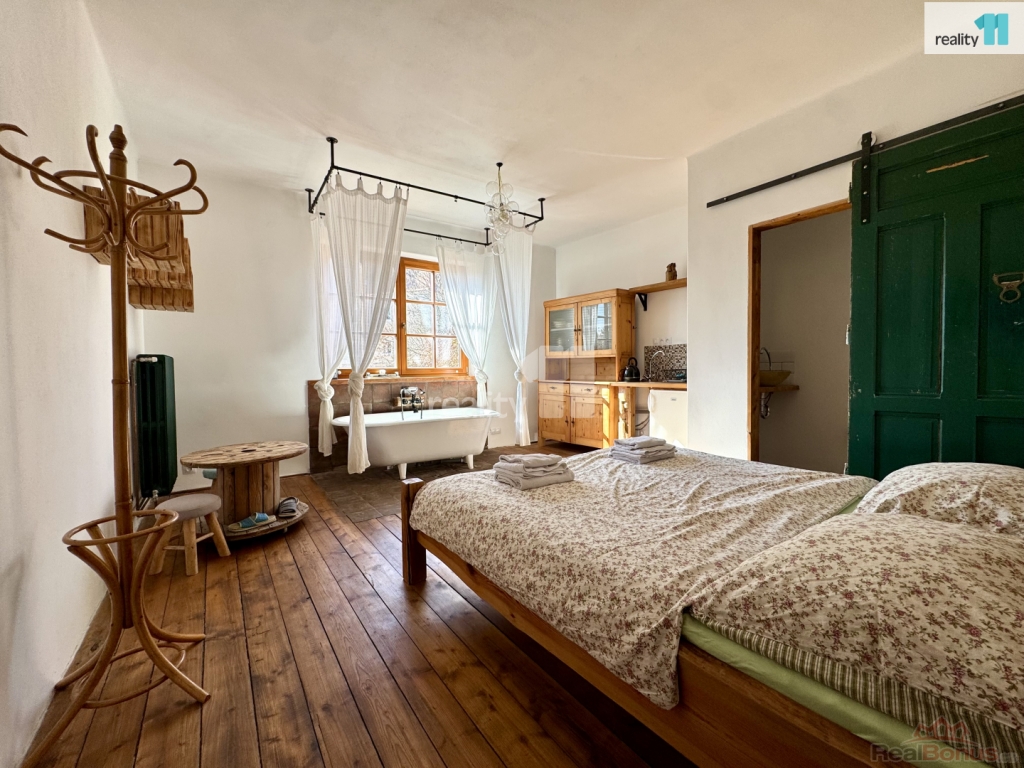 Na patře se nachází také byt 1+1, který lze využít jako další ubytovací jednotku, dlouhodobý pronájem nebo vlastní zázemí.