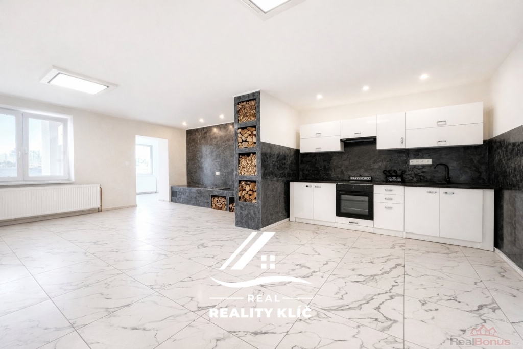 Bytová jednotka nabízí dva prostorné a samostatné pokoje, které jsou ideální jako ložnice či dětský pokoj. Dále zde naleznete kuchyni propojenou s obývacím prostorem, která je vybavena moderní vestavěnou kuchyňskou linkou se spotřebiči. Dominantou obývacího prostoru jsou také okrasná a plně funkční krbová kamna, která dodávají interiéru útulnou a velmi příjemnou atmosféru domova.