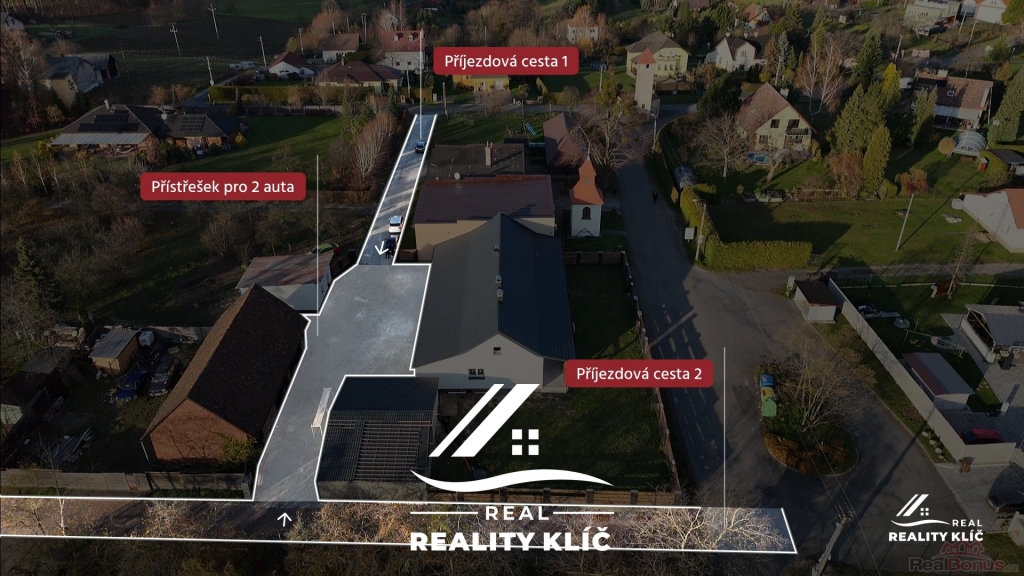 Součástí je také věcné břemeno jízdy a chůze po oddělené příjezdové cestě k domu, což zajišťuje pohodlný přístup i parkování. K nemovitosti náleží rovněž zahradní domek a přístřešek pro parkování automobilu.