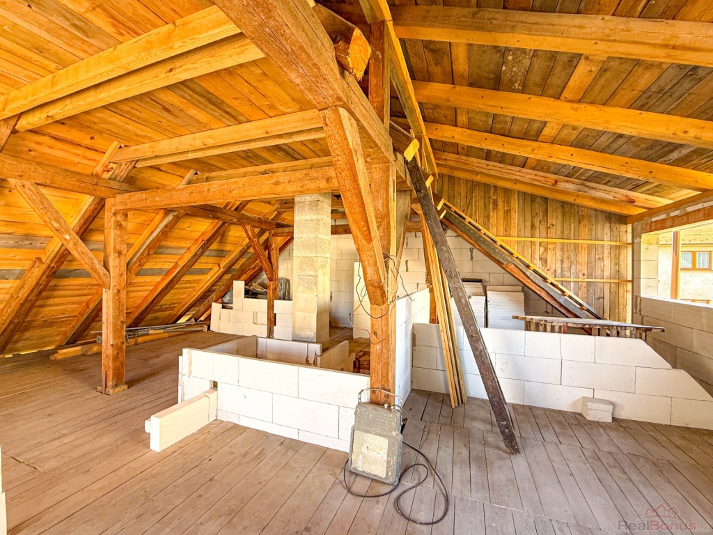 Dům má novou střešní krytinu a již byly provedeny důležité stavební práce, jako jsou kompletní izolace zdí, podkladní betony, nový komín, schodiště a rozvody odpadů. Nemovitost je napojena na obecní vodovod, kanalizaci a plynovod. K dispozici je platné stavební povolení, plány i vizualizace.