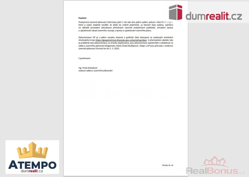 Cena je včetně provize RK a právního servisu. Více informací Vám poskytne makléř Tomáš Pelda., Dumrealit.cz Vám zprostředkuje prodej stavebního pozemku o rozloze 6.439 m v Úsilném ve městě České Budějovice. Pozemek par. číslo 269/4 zapsaný na LV 167 v kú Úsilné. Územně plánovací informaci s informacemi o možnosti zástavby na pozemku naleznete mezi fotografiemi. Ve vzdálenosti cca 600 m vede plyn, vodovod a kanalizace. Doporučuji prohlídku, pozemek se nachází cca 10 minut od centra města České Budějovice. K dispozici máme kompletní zákres inženýrských sítí, Územně plánovací informaci s možnostmi zástavby a využití pozemku. Možnost koupě i 2. pozemku vyznačeného červeně na fotografiích, par. č. 271/3 zapsané v k.ú. Úsilné. Více informací Vám poskytne realitní makléř Tomáš Pelda z realitní kanceláře A TEMPO fungující pod ochrannou známkou dumrealit.cz. Ev. číslo: 642996.
