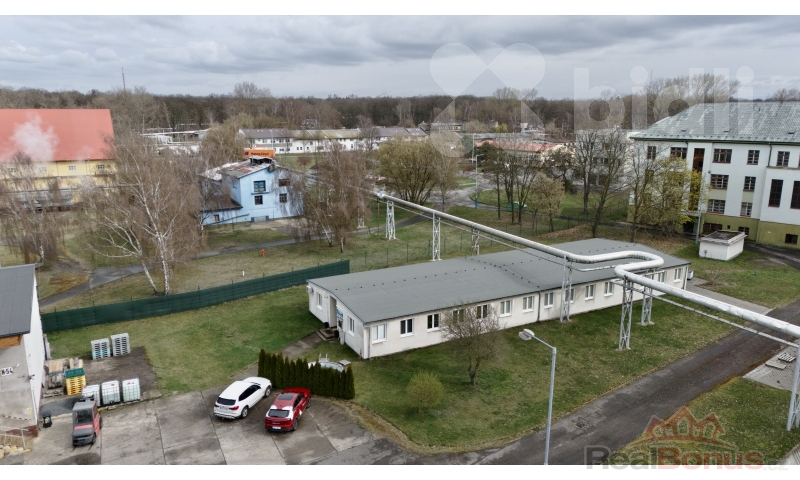 1. budova je administrativní o velikosti 474 m2 s výškou stropů 2,5 - 2,8 m. Jedná se budovu po rekonstrukci s plastovými okny s bezpečnostní mi foliemi v oknech. V budově jsou samostatné i propojené kanceláře. Vytápění je centrální. Součástí jsou toalety a sprchy .