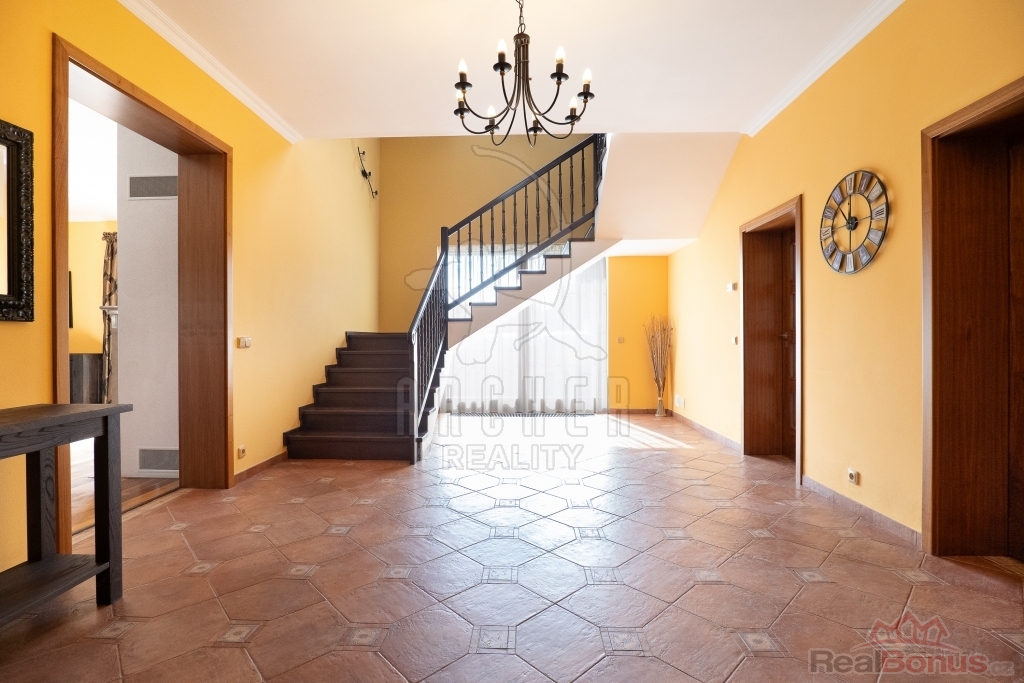 Nabízíme k prodeji prostorný dům 6+kk, užitná plocha 308 m2, s terasou, garáží, udržovanou zahradou, na pozemku celkové rozlohy 1226 m2, Kamenice - Nová Hospoda, ul. Na Stráni. Rodinný dům, který nabízí prostor, klid i pohodlí na dosah Prahy.