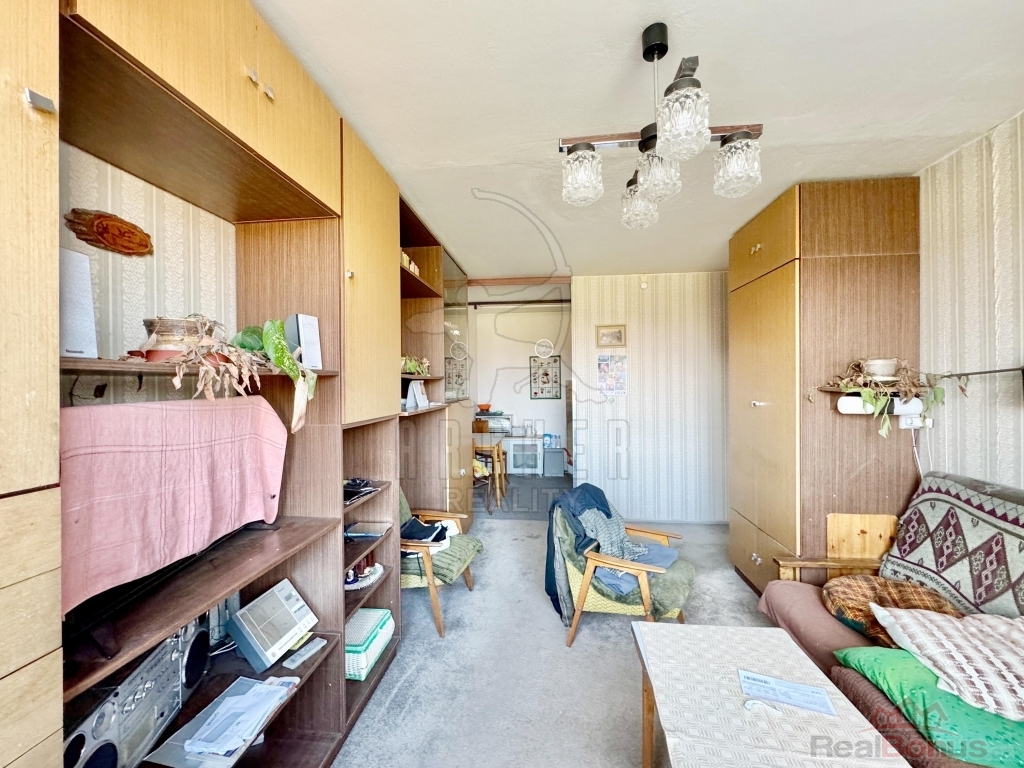 Obývací pokoj je chytře propojený s kuchyňským koutem. Ložnice má dostatek místa pro postele i nábytek. Oba pokoje jsou bohatě prosvětleny velkými plastovými okny.