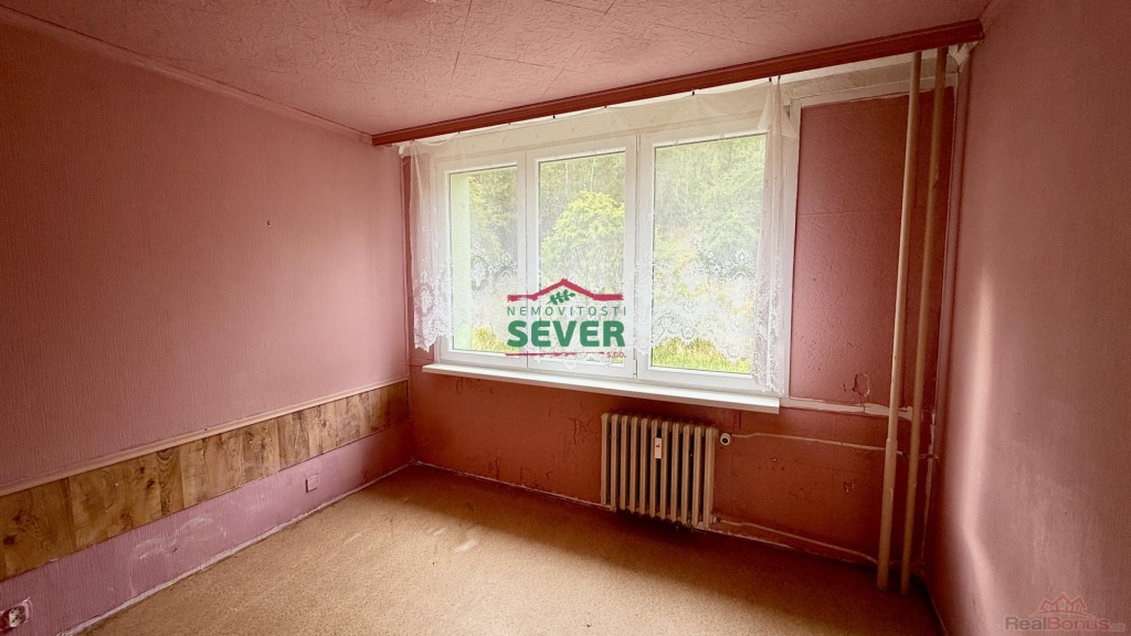 Nemovitosti SEVER vám zprostředkují prodej družstevního bytu s dispozicí 4+1 situovaného v okrajové části Litvínova v Janově. Byt, který se nachází v první patře panelového domu s výtahem, je v původním, udržovaném stavu, vhodný ihned k užívání i k rekonstrukci dle vlastních představ nových majitelů. Byt se skládá z předsíně, obývacího pokoje, kuchyně, tří samostatných pokojů, koupelny a WC. Bytové jádro je původní. Byt je ihned připraven k převodu na bytovém družstvu a k předání. Anuita je splacená, byt není možné převést do osobního vlastnictví.