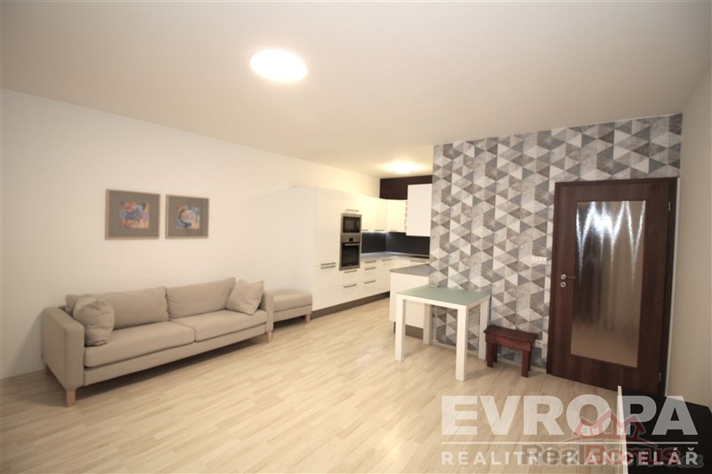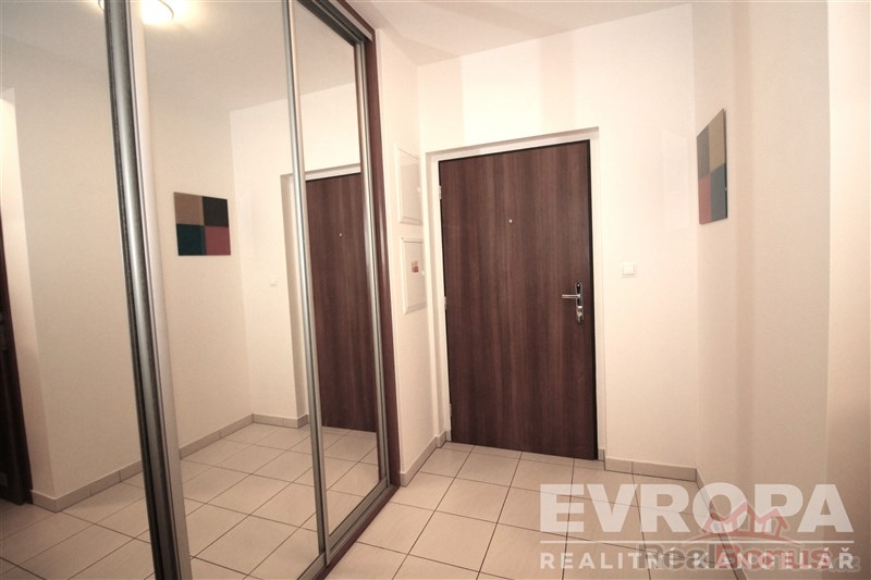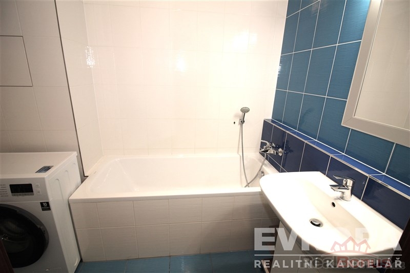 Byt je částečně vybavený, k dispozici Vám bude prostorná bílá kuchyňská linka s vestavěnými spotřebiči (lednice s mrazákem, trouba, varná deska, digestoř, mikrovlnná trouba a myčka) a jídelní stůl pro 2 osoby. V obýváku jsou zavěšené skříňky pod TV, gauč a taburet. Spoustu úložného prostoru poskytne vestavěná skříň na chodbě a šatní skříň v ložnici. Na podlaze v obýváku a ložnici je laminátová plovoucí podlaha, v ostatních místnostech je dlažba. Kvalitu bydlení zvyšují bezpečnostní skla a protihluková stěna v ložnici.