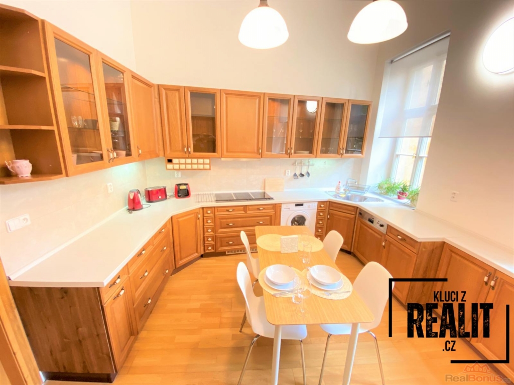 K dlouhodobému pronájmu nabízíme prostorný, plně vybavený byt s původními prvky o dispozici 1+1 a výměrou 49 m2, situovaný ve 2. podlaží historického domu s výtahem v prestižní lokalitě Malé Strany, v ulici Újezd.