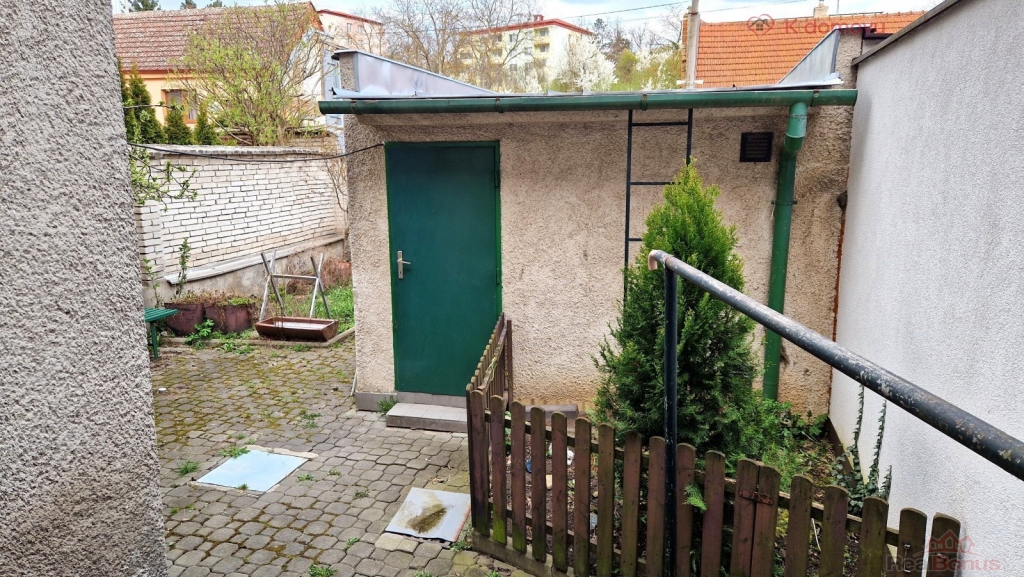 Dvůr je přístupný také z ulice z druhé strany, kde se nachází rovněž vjezd do garáže. Na dvorku je kromě garáže možnost vybudovat zahradní posezení s grilem, dětskou houpačku či osázet několik záhonů.