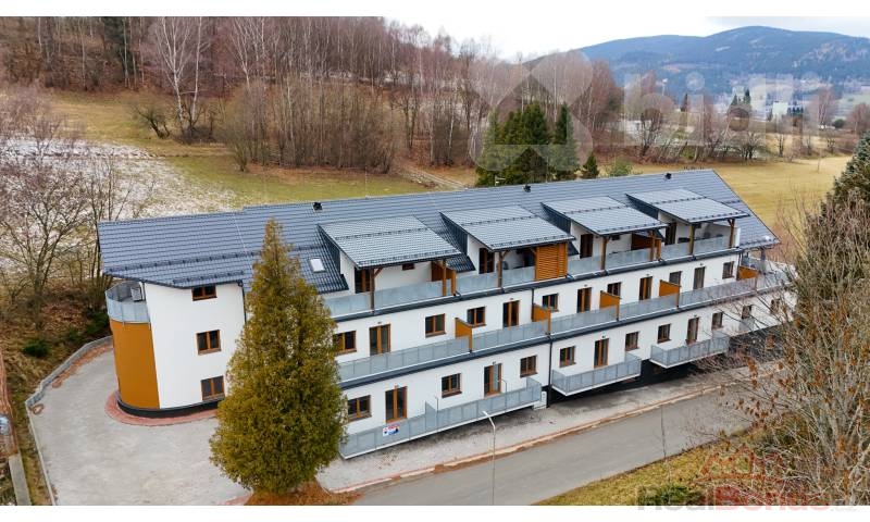 Nabízíme k prodeji moderní apartmánový byt situovaný v 2NP revitalizovaného bytového domu s výtahem, který se nachází v malebném podhorském městě Vrbno pod Pradědem. Dům je energeticky nenáročný a poskytuje svým obyvatelům komfortní a úsporné bydlení v těsné blízkosti přírody. Apartmán je orientovaný na západ, díky čemuž nabízí krásné výhledy na okolní přírodu a dokonalé večerní atmosféry na prostorné z části kryté střechou terase. Interiér je nadčasově a velmi kvalitně vybaven, a to včetně moderního systému podlahového vytápění s možností dálkového ovládání. Stejně tak je i vstup do apartmánu řešen chytrým kódovým zámkem, ideálním v případě využití nemovitosti k rekreačním pronájmům. Stejně tak i k trvalému bydlení.