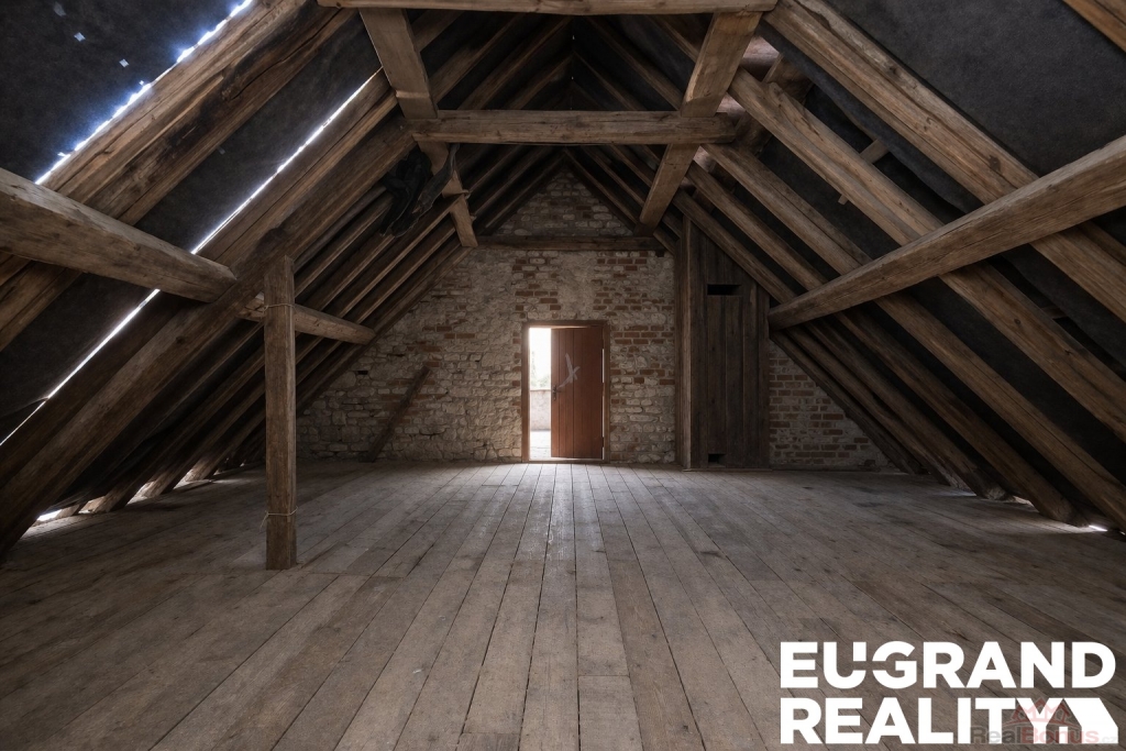 půdní prostor o výměře cca 150 m2 vhodný k vestavbě dalších bytových jednotek navazující podkrovní část