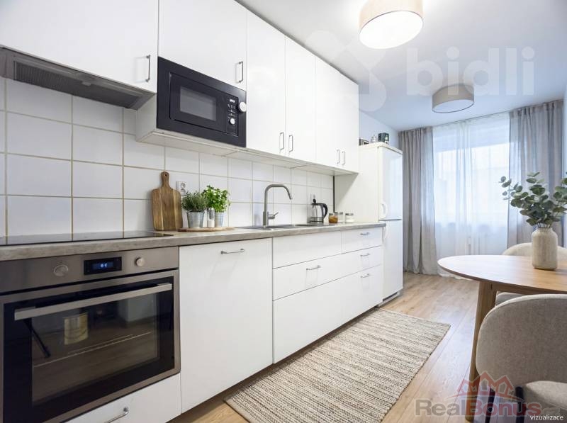 Jedná se o útulný a světlý byt nacházející se ve 3. nadzemním podlaží. Při vstupu vás přivítá prostorná chodba s dostatkem úložného prostoru. Byt dále nabízí dva samostatné pokoje, koupelnu s vanou, samostatnou toaletu s umyvadlem a obývací pokoj. Z obývacího pokoje je přístup na zasklenou lodžii, která se rozkládá přes celou šíři obývacího pokoje a kuchyně, čímž poskytuje ideální prostor pro relaxaci. Kuchyně disponuje jídelním koutem a moderní kuchyňskou linkou s vestavěnými spotřebiči - varná deska, trouba, mikrovlnná trouba a myčka nádobí.
