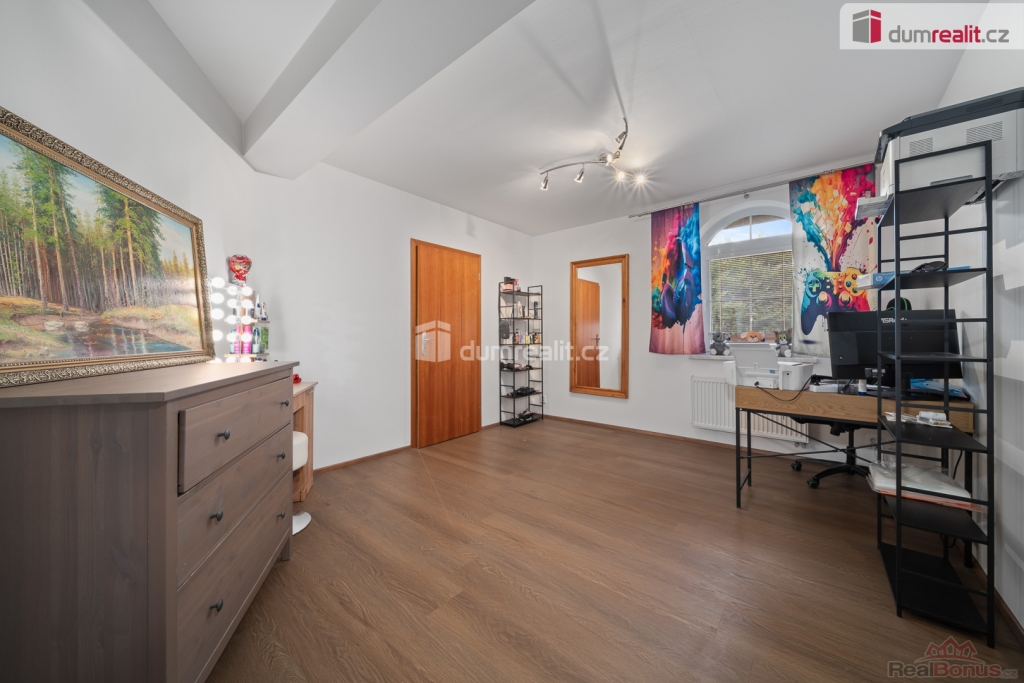 Dispozice domu je promyšleně rozdělena do tří podlaží. V přízemí naleznete tři samostatné pokoje, prostorný obývací pokoj s kuchyňským koutem, koupelnu s WC a samostatné WC. V 1. nadzemním podlaží jsou další tři pokoje, koupelna a WC, což poskytuje dostatek prostoru pro větší rodinu či kombinaci bydlení a home office. Suterén domu nabízí technické zázemí, prádelna se sprchou a WC, sklad a dvě další místnosti s širokým využitím.