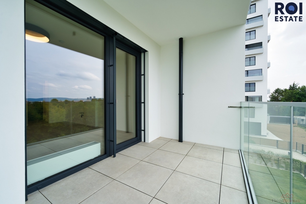 Z balkonu se díváte přímo do korun stromů - příjemné soukromí, přirozený stín v létě a kulisa, která zklidní i ten nejhektičtější den.