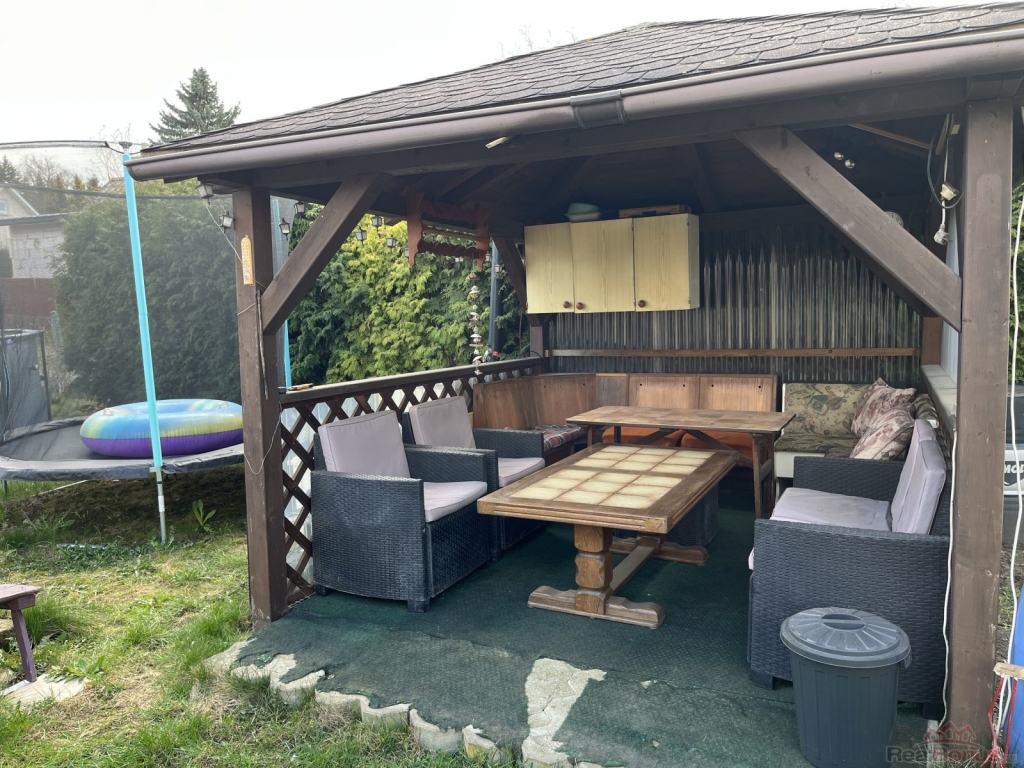 Nabízíme k prodeji zahradu o výměře 362 m s chatou o výměře 17 m. V přízemí se nachází kombinace obývacího pokoje s kuchyní a obytné podkroví. Pod chatou je vybudován malý sklep. WC je chemické, možnost zřízení splachovacího. Na udržované zahradě je skleník, pergola, bazén a dílna na nářadí. Z ovocných stromů je zde broskev, švestka, meruňka, jabloň, dále víno a angrešt. Je zde příprava na možnost parkování přímo na zahradě. Voda sezonní.