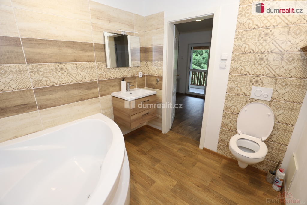 , Dumrealit.cz Vám zprostředkuje pronájem prostorného bytu 3+1/B v prvním patře cihlového domu se zastřešeným balkonem a možností užívat zahradu a dobrou možností parkování. Bytová jednotka o celkové rozloze cca 100 m (z čehož 10 m tvoří balkon) nabízí prostorný obývací pokoj, samostatnou kuchyni, 2 pokoje, šatnu, velkou koupelnu s vanou a toaletou a velkou chodbou. Balkon je přístupný z předsíně. Byt je ve výborném udržovaném stavu po rekonstrukci. Na podlaze je zcela nové linoleum, jsou zde nová topná tělesa, elektroinstalace je v mědi. Stropy bytu jsou zateplené foukanou izolací, budova spadá do energetické kategorie "C" - úsporné. Byt se pronajímá bez nábytku, k dispozici zůstává kuchyňská linka bez lednice. Vytápění zajišťuje centrálně tepelné čerpadlo. K domu náleží velká zahrada o rozloze cca 1000 m, kterou mohou nájemníci po domluvě užívat. V domě jsou celkem 4 byty, dům poskytuje příjemné soukromé bydlení se slušnými prověřenými sousedy. V Mariánských Lázních je veškerá občanská vybavenost včetně úřadů, bank, restaurací, obchodů, jsou zde supermarkety LIDL, PENNY, TESCO, Kaufland, BILLA, DM, Planeo elektro, JYSK, super ZOO, TAKKO, KIK, Deichmann. Mariánské Lázně jsou úžasné místo pro život i odpočinek, jsou prošpikované sítí turistických, cyklistických a běžkařských tras. Sportovcům je k dispozici plavecký bazén, sportovní areál Viktorka, zimní stadion pro bruslaře, lyžařská sjezdovka s lanovkou, tenisové kurty, v létě je koupaliště Lido s písečnou pláží. Úžasné městské parky nabízí krásná zákoutí včetně kolonády se světoznámou zpívající fontánou a přilehlý labutí park, Ferdinandův pramen, Lesní pramen, Rudolfův pramen, Medvědí pramen, Geologický park, obůrku Hvozd s daňky a jeleny. Mariánské Lázně se nachází v blízkosti Německa, kde je jak možnost výhodných nákupů tak finančně zajímavého pracovního uplatnění. Čistý měsíční nájem činí 13.000,-Kč. Měsíční poplatky zahrnující teplo, teplo vodu, studenou vodu, odpad, elektřinu v bytě, správu atd. činí 5.500,-Kč. Energie zůstávají vedeny na majitele. byt má své podružné měřáky na elektřinu, vodu i teplo. Kauci požaduje majitel ve výši 18.500,-Kč. Provize RK činí 13.000,-Kč + DPH (15.730,-Kč). Ev. číslo: 655284. Energetický štítek: C (20 kWh/m2/rok).
