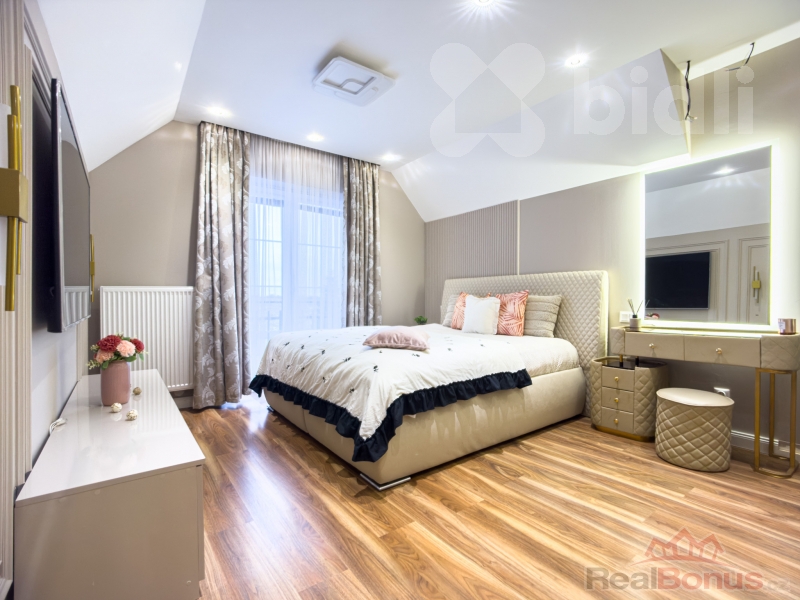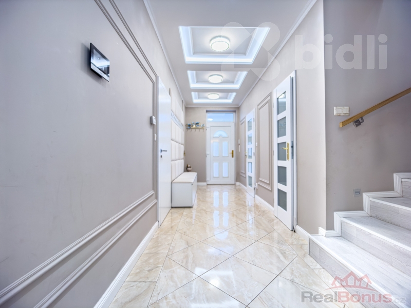 - mramorové prvky, dekorativní nástěnné lišty, vkusné stropní osvětlení ve všech částech domu