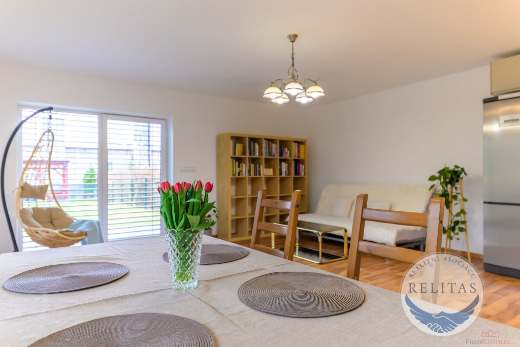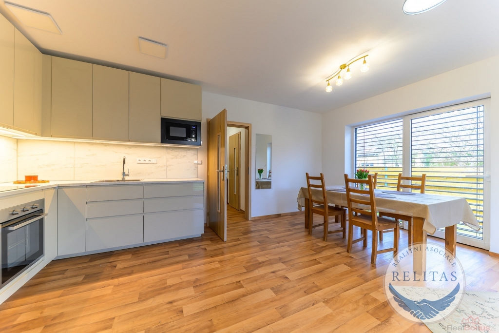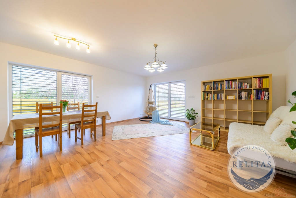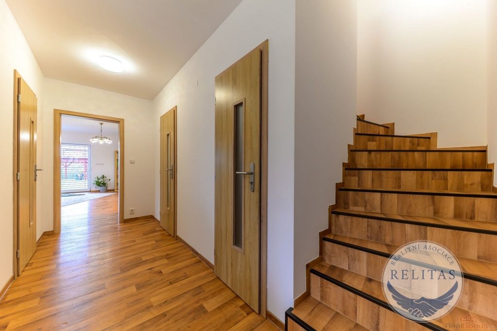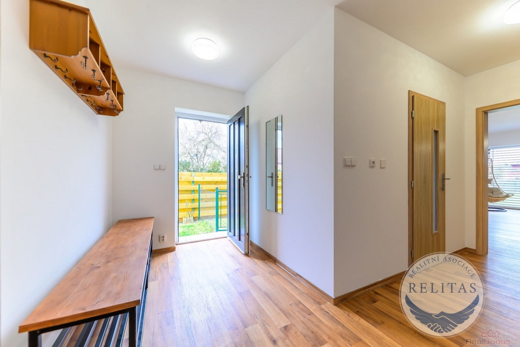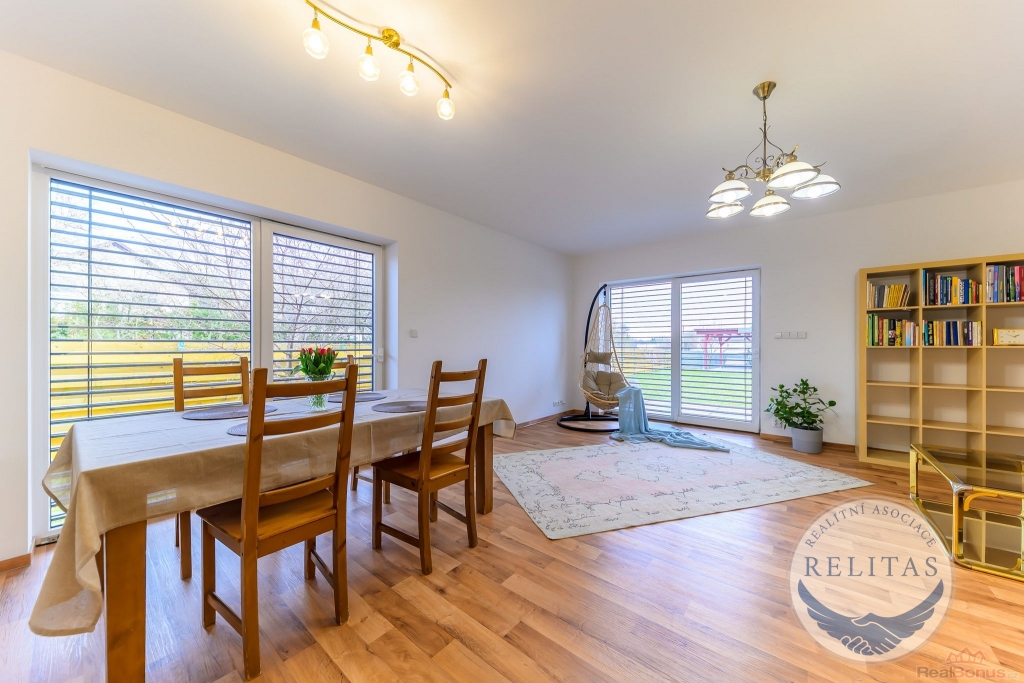 Dispozičně řešen pro rodinu i pro kombinaci bydlení s prací z domova. V přízemí se nachází prostorný obývací pokoj s kuchyňským koutem, dále ložnice/pracovna, šatna, koupelna, technická místnost a úložná komora. V patře jsou dvě samostatné ložnice, druhá koupelna a také menší kuchyňka využitelná pro vícegenerační bydlení, dospívající děti nebo pohodlné zázemí pro hosty. Na všech oknech jsou elektricky ovládané moderní venkovní žaluzie. Vytápění a TUV zajišťuje plynový kotel, podlahové vytápění, dům napojen na vodovod a kanalizaci.