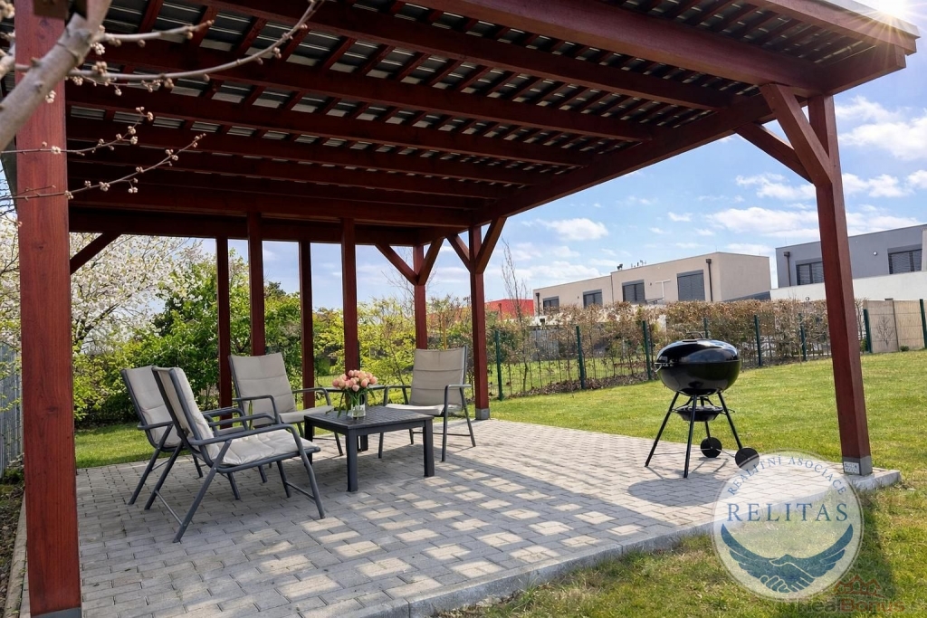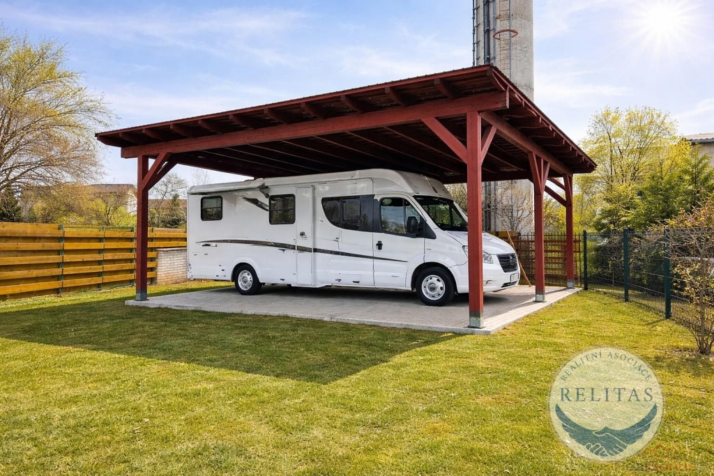 Na zahradě stojí nadstandardně vysoký přístřešek, který je svou plochou i výškou přizpůsoben pro parkování karavanu nebo obytného vozu. Možno využít i jako stylovou pergolu pro posezení s přáteli. Na zahradě roste množství ovocných stromů sklízejte třešně, jablka, meruňky a švestky.