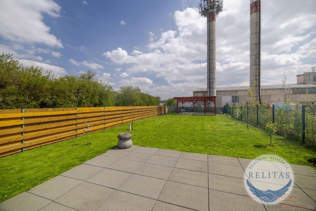Za zahradou se nachází ekologická výkupna surovin se dvěma nefunkčními a nepoužívanými komíny, na které je z domu vidět. Tuto skutečnost je fér zmínit. Areál výkupny surovin neprodukuje hluk ani jinou zátěž.
