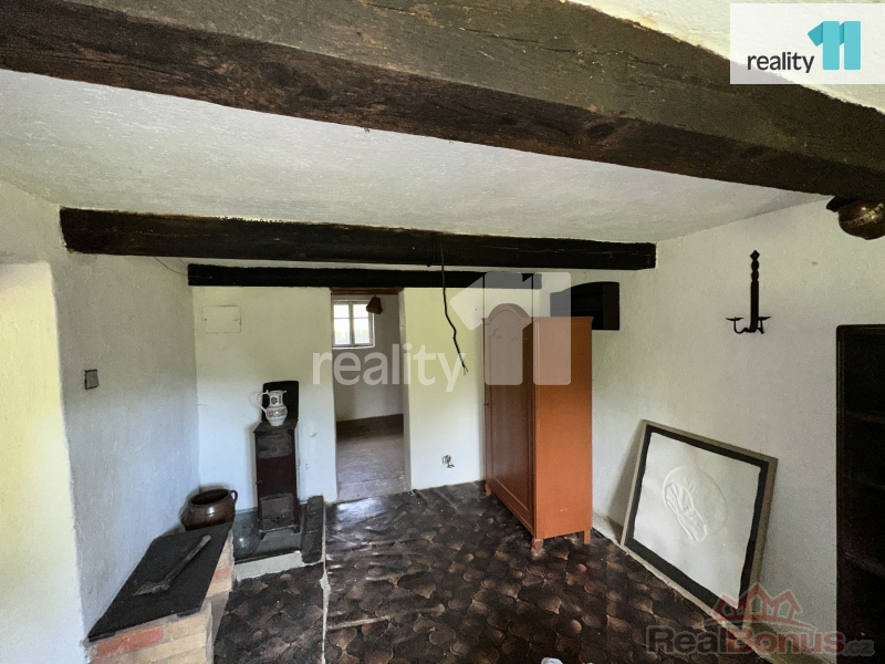 , Reality 11 Vám zprostředkují koupi ideální poloviny rodinného domu, jejíž užívání je ošetřeno Notářským zápisem s pozemkem a stodolou v Medonosech, okres Mělník. Prodávaná jednotka, polovina RD, je umístěna v přízemí domu. V současné chvíli je dům rekreační chalupou. Dům byl postaven roku 1900, v roce 1965 a 1975 prošel rekonstrukcí. Základy má kamenné, objekt je smíšené konstrukce. Stěny mají tloušťku 30 cm a stropy jsou dřevěné, trámové. Tvar střechy je sedlový. Střešní krytinu tvoří pálená taška, eternitové šablony a klempířské prvky jsou plechové, pozinkované. Vnější omítky jsou vápenocementové. Dispozičně má dům dvě bytové jednotky, je zde samostatný vchod s dohodou k užívání, která je notářsky ověřená od roku 1992. Okna jsou dřevěná. V domě jsou použity dřevěné plné interiérové dveře, mají dřevěné zárubně a vchodové dveře jsou dřevěné. Na podlahách je cementový potěr, lino, prkenná podlaha. V domě je zavedena elektřina o napětí 230 V. Zdroj pitné vody zde není. V minulosti byl řešen přípojkou od sousedů. Na dům navazuje stodola, kde k prodávané jednotce lze přistavět ještě další pokoje.