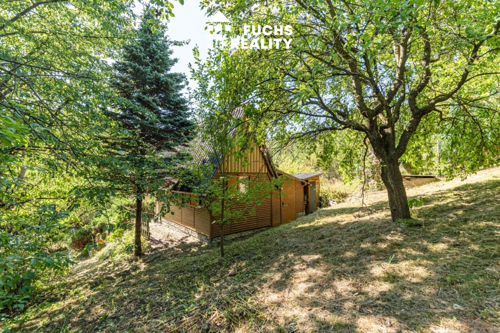 Dispozice chaty zahrnuje zádveří, obytnou místnost s kuchyňským koutem a podkroví s balkonem, odkud je krásný výhled do okolní přírody. Nechybí ani sklep, kolna a suché WC. Na pozemku je přípojka a rozvod obecního vodovodu, elektřina se nachází na hranici pozemku s možností napojení.