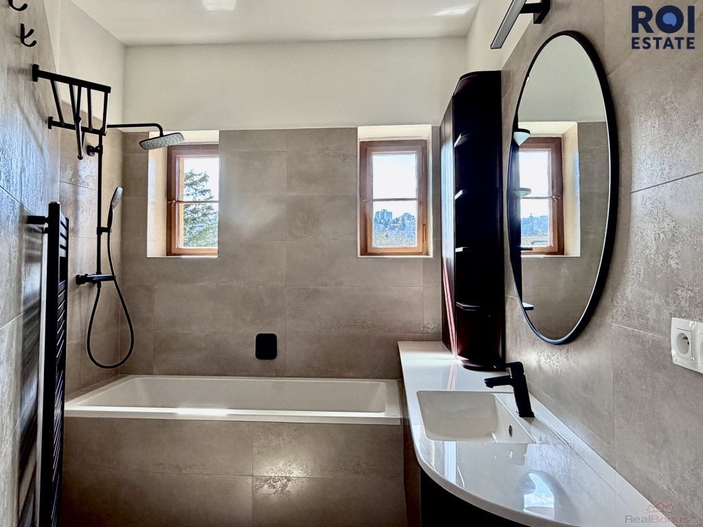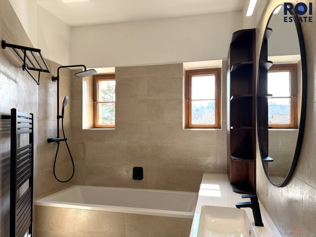 Koupelna je vybavena vanou, toaleta je oddělená. Praktickým benefitem je technická místnost s pračkou a dostatek úložného prostoru v podobě velké vestavěné skříně na chodbě. Byt je částečně vybavený a připraven k nastěhování.