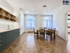 Byt disponuje moderně řešeným kuchyňským koutem, který je plně vybaven spotřebiči a plynule navazuje na obývací část. Součástí je také jídelní stůl se židlemi. K dispozici jsou dvě samostatné ložnice, ideální pro rodinu, pár nebo spolubydlení.