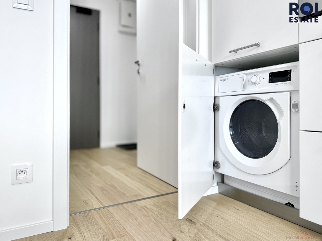 Vstupte do světa čistého designu a moderního pohodlí. Ateliér o výměře 23 m2 se nachází ve 3. patře s výtahem a je připraven stát se vaším novým domovem nebo inspirativním pracovním prostorem. Srdcem hlavní místnosti je luxusní kuchyňská linka na míru v kombinaci bílé barvy a dekoru dřeva, doplněná o elegantní tmavou pracovní desku. Kuchyně je plně vybavena špičkovými vestavnými spotřebiči včetně trouby, varné desky, digestoře, dřezu, vestavné lednice s mrazákem a nechybí ani praktická myčka nádobí a pračka.