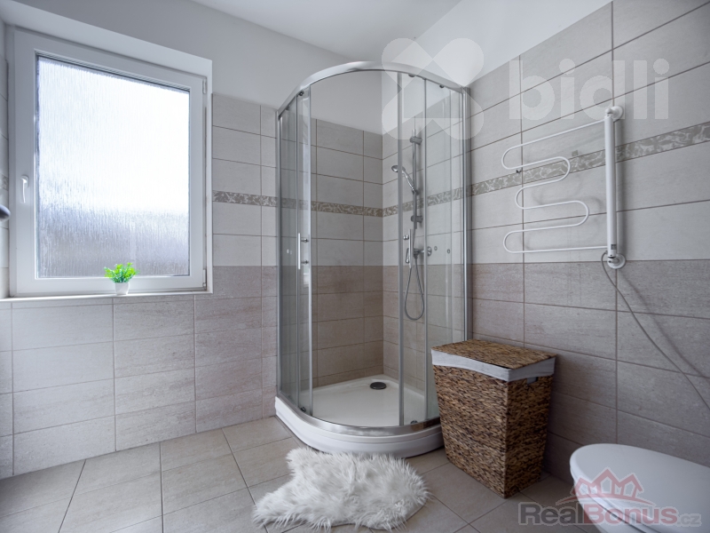 Dispozice domu 4+1, kde v přízemí je vstupní chodba, prostorný obývací pokoj s jídelním koutem a novou plně vybavenou kuchyní se spotřebiči, koupelna se sprchovým koutem a WC. Po schodech se dostaneme do 1. patra kde je ložnice a dva dětské pokoje (či pracovna), samostatné WC.