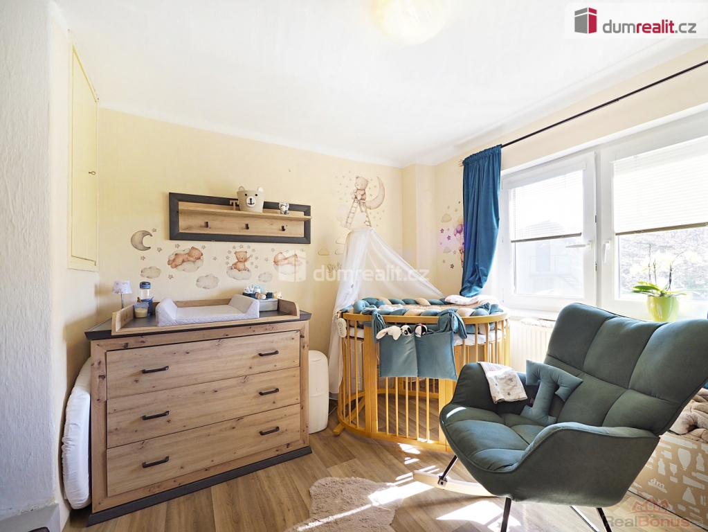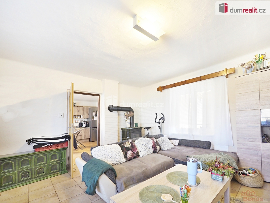 , Dumrealit.cz Vám zprostředkuje možný prodej rodinného domu 4+kk se zahradou, vlastní studnou, sklepem pod domem i na zahradě. Po vstupu do přízemí domu pře zasklené zádveří se ocitneme v chodbě se schodištěm, z které je možný vstup do sklepa, WC, koupelny, patra a dále do místnosti s kuchyňským a jídelním koutem o velikosti cca 20m z které se vstoupí do obývacího pokoje cca 22m.