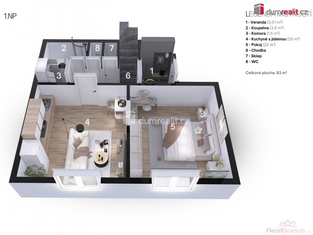 | Celková podlahová plocha | 83 m² |