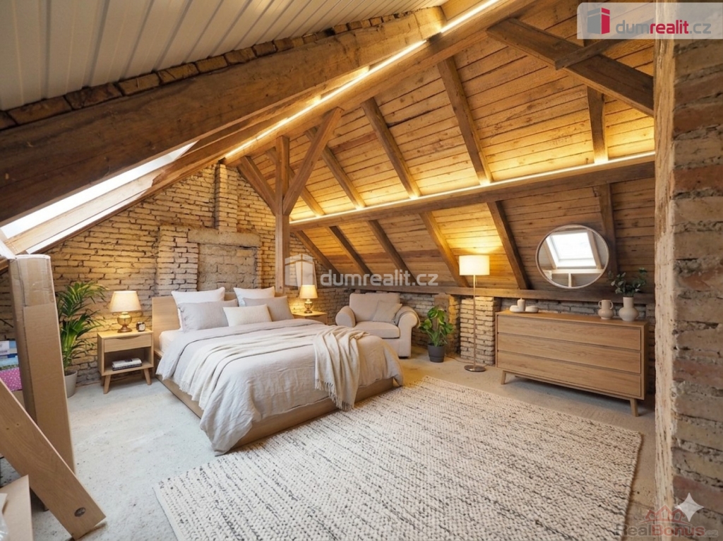 V 1.patře je místnost o velikosti cca 8,5 m z které je dále možné vstoupit do ložnice cca 18m a na půdu. Dům je napojený na elektřinu 220/380V, plyn, kanalizaci, vodu z řadu, studniční vodu pro zahradu (nová domácá vodárna), pevnou linku, novou anténu se zesilovačem pro příjem DVB-T2. Rekonstrukce v domě zahrnovala Instalaci nového sporáku, akumulačních kamen obložených keramikou (zapojené 08/19), krbová kamna. Montáž kompletních nových rozvodů vody v PVC, nové odpady včetně kanalizační přípojky kolaudace 12/019. Byla vyměněna střešní krytina 2024 nový plynový kotel a zásobník na teplou vodu, ústřední topení s radiátory 2021, střešní okna v půdním prostoru. Komín je vyvložkovaný. V přízemí domu je rozvedena nová elektřina v mědi Cyky 2,5 nové jističe, zásuvky. V patře je elektřina v mědi starší. Podlahovou krytinu tvoří keramická dlažba v koupelně, WC, kuchyni, obýváku, schodišti do patra. Chodba v přízemí nové PVC dekor dřevo. V celém domě jsou nová plastová okna s žaluziemi a sítěmi proti hmyzu. Dům má z větší části opravenu fasádu rovněž tak i přístavek s dílnou a skladovými prostory. Na zahradě je skleník s betonovými základy, venkovní udírna s krbem, studna. Ze stromů je zde vzrostlý ořech a tis, dále ovocné stromy. Dále pak podzemní sklep o velikosti 4,5m. Ve zděném přístavku se nachází skladový prostor pro dřevo, sklad pro nářadí a materiál. Při bráně domu se nachází dílna cca 18 m. V blízkosti domu se nachází mateřská školka, 2 x restaurace, obchod s potravinami, pošta, zastávka PID pravidelné spoje, 1 km je zastávka vlaku Nové Ouholice-Praha. Obec se nachází 1km od exitu 18 D8 směr Praha. Vyšší občanská vybavenost nejblíže ve městě Veltrusy vzdáleném 5km kde je i státem chráněná oblast zámecký park Veltrusy 298 ha, dále pak v Kralupech nad Vltavou 7km, Mělník 13km, Praha 18km. Ev. číslo: 655325. Energetický štítek: G (546 kWh/m2/rok).