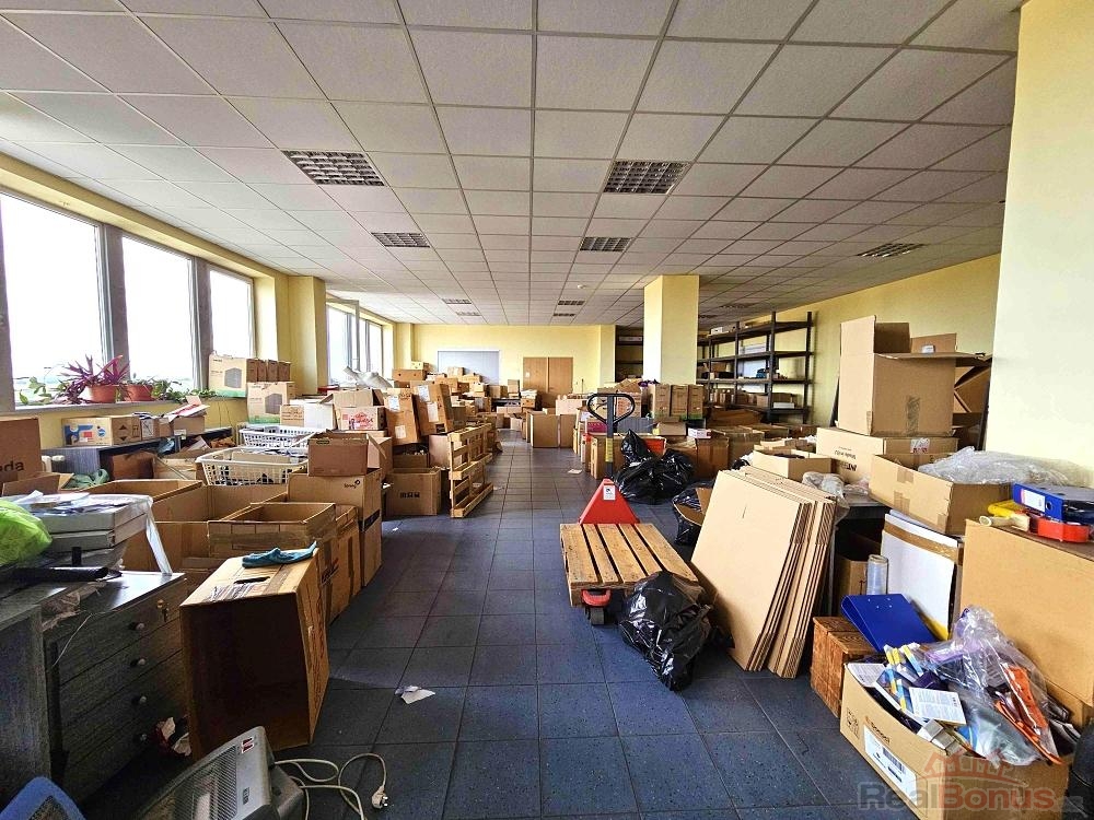 Prostory pod vlastním uzavřením ( celé podlaží ) - viz foto. 2x nákladní výtah. 1x osobní výtah. Nosnost podlah min 750 Kg/m2. Dnes děleno příčkou na skladové a admin. prostory - e-shop. Příčky lze posunout či zcela demontovat - viz plánek. K dispozici od 10-2025