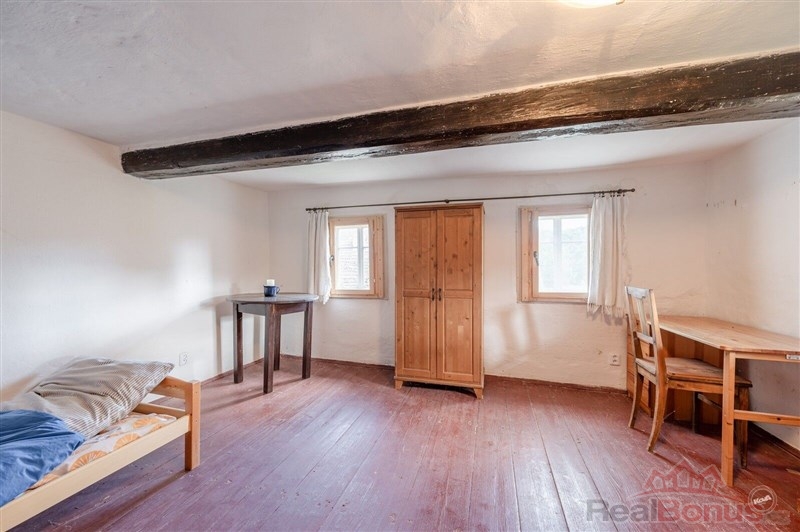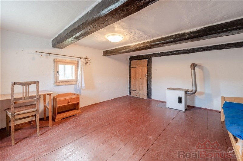 Roubenka, které říkáme jednoduše Tetka. Historická roubená stavba s kamenným základem, která si přes generace uchovala svou krásu i pevnost. V přízemí najdete útulný obývací prostor s kuchyní, koupelnu a menší místnosti; v patře pak dvě ložnice a skladovací prostory. Pod střechou se rozkládá velká půda kdysi využívaná ke skladování chmele. Přestože nese stopy času, během posledních let prošla řadou oprav, takže dnes spojuje atmosféru historického domu s pohodlím moderního bydlení.