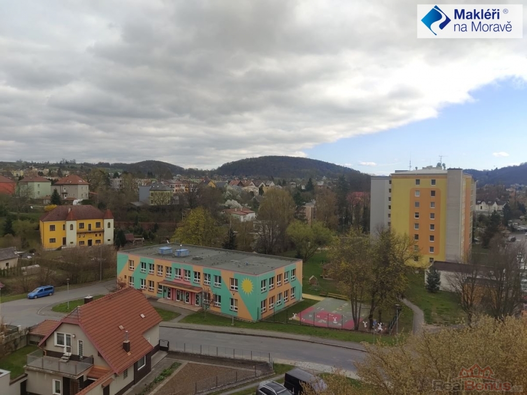 Byt v 5. patře panelového domu má dva prostorné pokoje, moderně vybavenou kuchyni, předsíň, šatnu, koupelnu s WC a lodžii s jižní orientací a pěkným výhledem.
