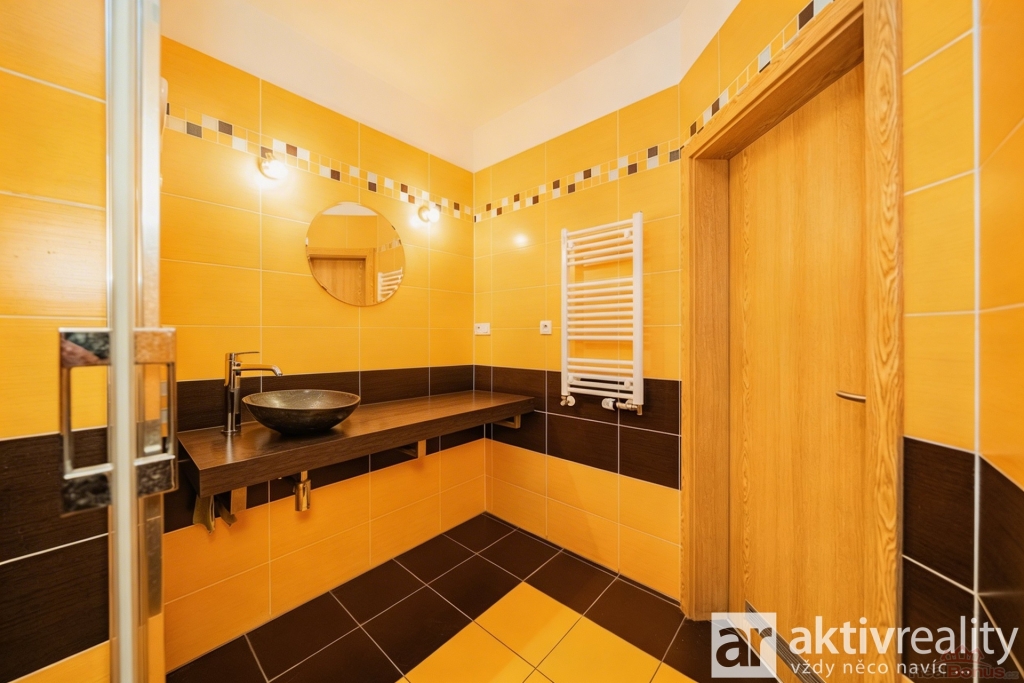 Koupelna je prostorná a nabízí velký sprchový kout a umyvadlo. Toaleta je samostatná a zároveň zde najdete i prostor pro pračku. Podlahy jsou řešeny prakticky ? v kuchyni, chodbě, koupelně a na toaletě je dlažba, v obývacím pokoji plovoucí podlaha. Vytápění je řešeno dálkově pomocí radiátorů.