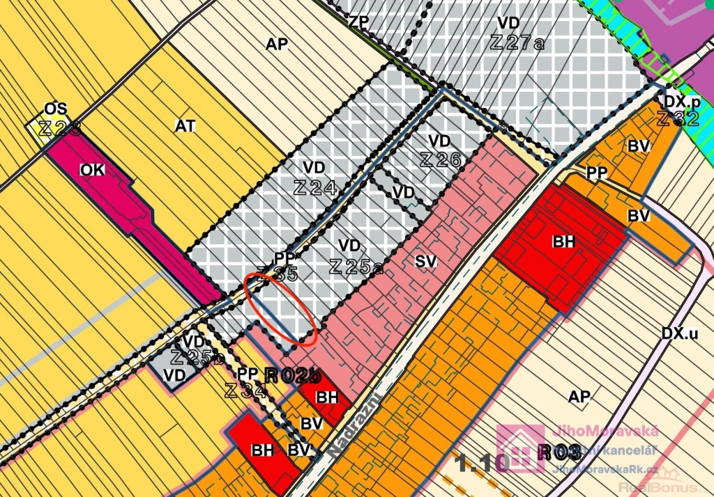 Konkrétně se jedná o parcelu č. 1225/3 v katastrálním území Rakvice. Dle územního plánu spadá do plochy VD - výroba drobná (viz. fotogalerie).