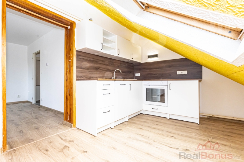 Ve výhradním zastoupení Vám nabízíme velmi pěkný podkrovní byt 2+1 s technickou místností a komorou. Byt se nachází ve 3NP ve zděném bytovém domě bez výtahu s pěti bytovými jednotkami, v obci Božice, okres Znojmo. Byt prošel částečnou rekonstrukcí: proběhla zde kompletní rekonstrukce koupelny, nová kuchyňská linka s novými spotřebiči, nové podlahy, výměna střešních oken, nová elektřina. Vytápění je zajištěno samostatným plynovým kotlem umístěným v bytě v technické místnosti s rozvodem do radiátorů. Ohřev teplé vody též plynovým kotlem.