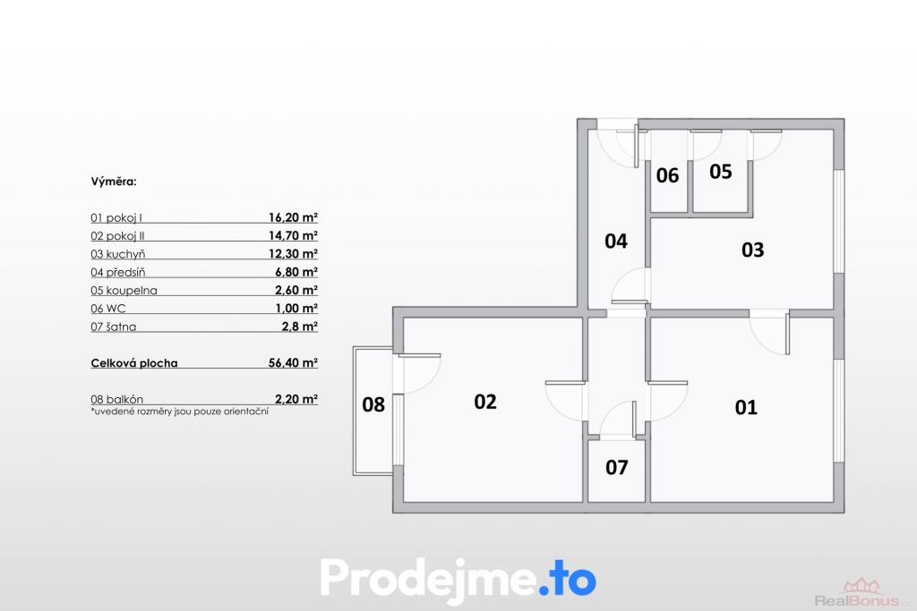 Byt je dispozičně řešený jako 2+1 o užitné ploše 56,4 m2 a má velmi praktické uspořádání. Základem jsou dva samostatné pokoje, které poskytují dostatek místa pro obývací část i plnohodnotnou ložnici. V kuchyni je dostatek prostoru pro moderní linku i jídelní stůl.