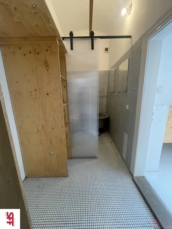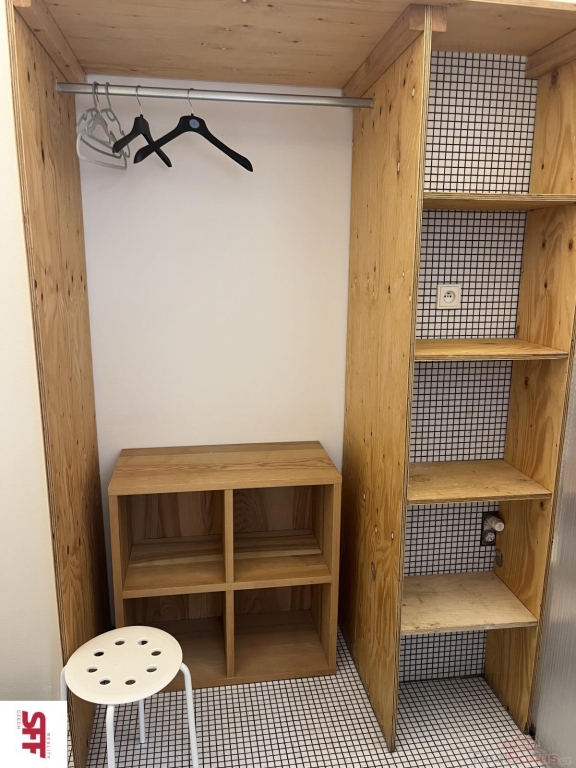 Byt je světlý, s velkým oknem a přístupem do klidného vnitrobloku domu, které do něj vnáší přirozené denní světlo. Byt se skládá ze vstupní chodby, malé koupelny s vanou a umyvadlem, samostatné toalety, částečně odděleného kuchyňského koutu od hlavní místnosti, je zde 1 vestavěné patro, které slouží ke spaní.