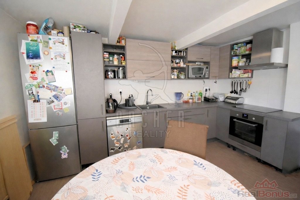 V přízemí prostorná chodba, kuchyň, pokoj, který je nyní neobýván a může sloužit jako obývací pokoj, koupelna s vanou a sprchovým koutem, samostatná toaleta a spižírna.
