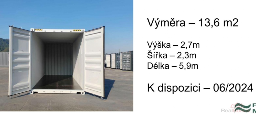 Popis : NÁJEM 2x lodního kontejneru 20´, vjezdový, uzamykatelný s manipulační plochou. Výborný stav. Volné IHNED.
