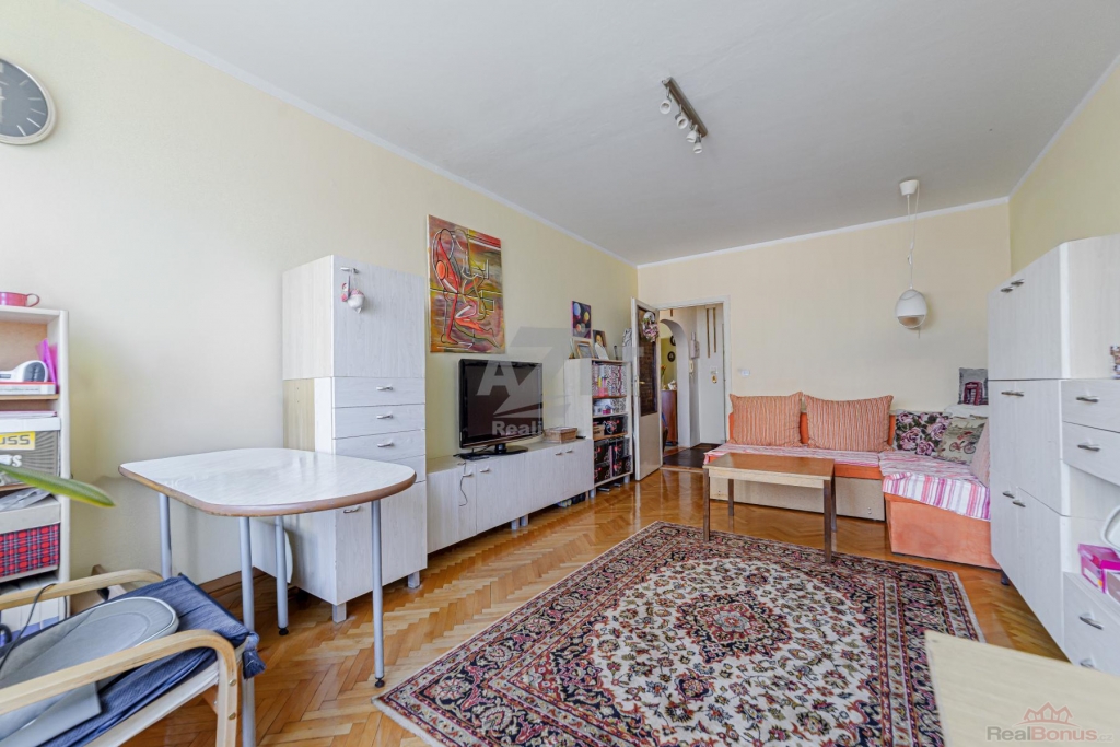 Naše společnost Vám exkluzivně nabízí k prodeji družstevní byt 3+1 po částečné rekonstrukci v 5.NP z třinácti. Převod do OV není aktuálně v plánu BD. Celková výměra prodávané nemovitosti včetně sklepa činí 92 m2. Nespočet úložných prostorů i díky komoře v předsíni. Vyzděné bytové jádro. Ve všech třech obývacích pokojích jsou položené velmi zachovalé parkety V ostatních místnostech keramická dlažba a PVC linoleum. Plastová okna se žaluziemi a parapety. Keramicky obložená koupelna se zapuštěnou vanou a vyhrazeným místem pro pračku. Samostatné WC Kombi. Kuchyňská linka se spotřebiči, barovým stolem a vstupem na první balkón. Na druhý balkón vstupujete z ložnice. Výhled na 2 světové strany (sever vs západ). Nízké měsíční náklady (2 osoby - 6460,- Kč včetně FO). Připojení k internetu a TV. K dispozici sklepní kóje a společná kolárna. Současní majitelé mají výlučně v pronájmu další sklepní prostor (12 m2/300,- Kč/měs.). Část nábytku na fotografiích si budou odvážet majitelé. Velkou výhodou této lokality je dostupnost městské hromadné dopravy (3 min. pěší chůzí) a nespočet parkovacích míst. Nabízená nemovitost je k dispozici od července 2026, popř. po individuální domluvě i o něco dříve.