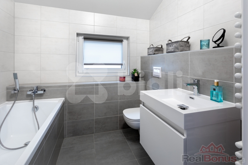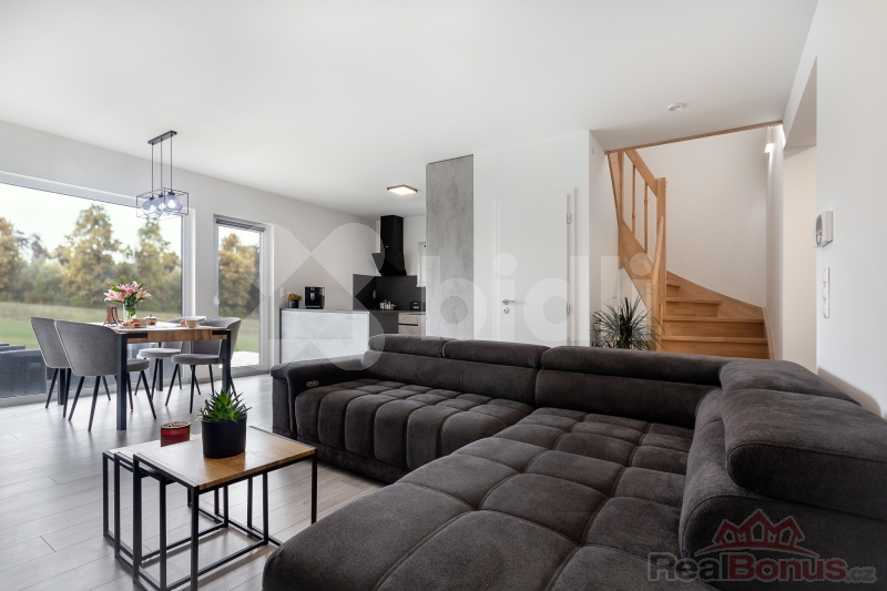Vysoký standard: dům je postaven z kvalitních materiálů, s důrazem na moderní design, komfortní a energeticky úsporné řešení.