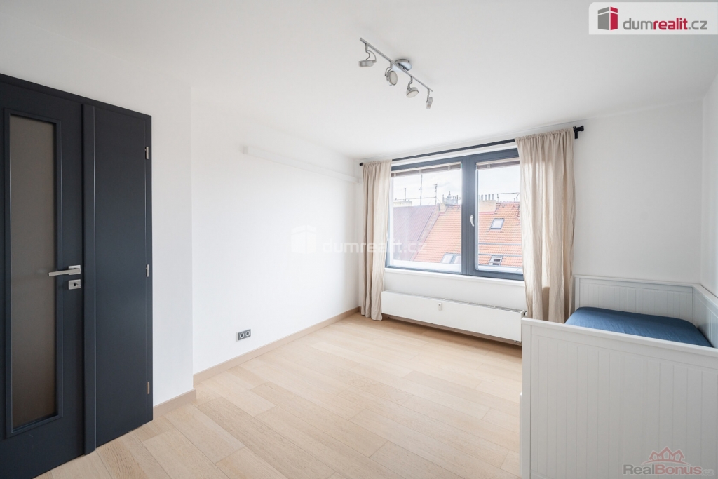 , Velice ráda Vám zprostředkuji pronájem nadstandardně vybaveného mezonetového bytu 3+kk o celkové ploše 89 m. Podlahová plocha činí 74 m a k bytu náleží dvě terasy o společné výměře 15 m. Byt se nachází ve velmi tiché ulici bez rušivých podniků. Skvělou dopravní dostupnost zajišťuje stanice metra Palmovka, která je vzdálená pouhé tři minuty pěšky, a kousek od domu najdete i zastávku tramvaje. Spodní patro tvoří předsíň s velkými vestavěnými skříněmi a samostatná toaleta s menším úložným prostorem. Srdcem tohoto patra je světlý obývací prostor s plně vybaveným kuchyňským koutem. K dispozici zde máte lednici s mrazničkou, troubu, myčku, indukční varnou desku i mikrovlnnou troubu. Obývací část je vkusně zařízena vestavěnými skříňkami, modrou rozkládací sedačkou, odkládacím stolkem, jídelním stolem se židlemi a špičkovou televizí s úhlopříčkou 55 palců. Z pokoje je zajištěn přímý vstup na terasu, přičemž okna i dveře stíní praktické obousměrné žaluzie. Na zemi ve spodním patře leží kvalitní vinylová podlaha. Horní patro nabízí chodbu s další vestavěnou skříní a klimatizací, která dokáže příjemně ochladit celý byt. Koupelna je vybavena vanou, skříňkami a nechybí zde ani pračka se sušičkou. Hlavní ložnice disponuje velkou šatní skříní, útulnými závěsy a dveřmi se sítí proti hmyzu. Druhá ložnice je vybavena praktickým jednolůžkem a na oknech má připravené žaluzie i závěsy. Podlahy v horním patře jsou plovoucí. K nemovitosti patří také sklep a vyhrazené parkovací stání v garáži. Budova splňuje energetickou náročnost třídy B, takže je velmi úsporná. Měsíční nájemné je stanoveno na 41.000,- + zálohy na domovní služby, spotřebu vody a vytápění 6 500 Kč. Energie jsou řešeny přepisem na nového nájemníka. Majitel vyžaduje uhrazení vratné kauce ve výši 82.000,- Kč, a provize za zprostředkování činí 41.000,- Kč. Odběr elektřiny se následně přepisuje přímo na nového nájemce. Pokud Vás toto krásné bydlení zaujalo, neváhejte mě kontaktovat, velmi ráda Vám byt osobně představím. Ev. číslo: 655276. Energetický štítek: B