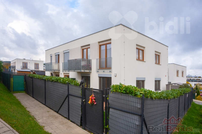 Nabízí komfort rodinného domu v rámci malého bytového projektu se čtyřmi jednotkami.